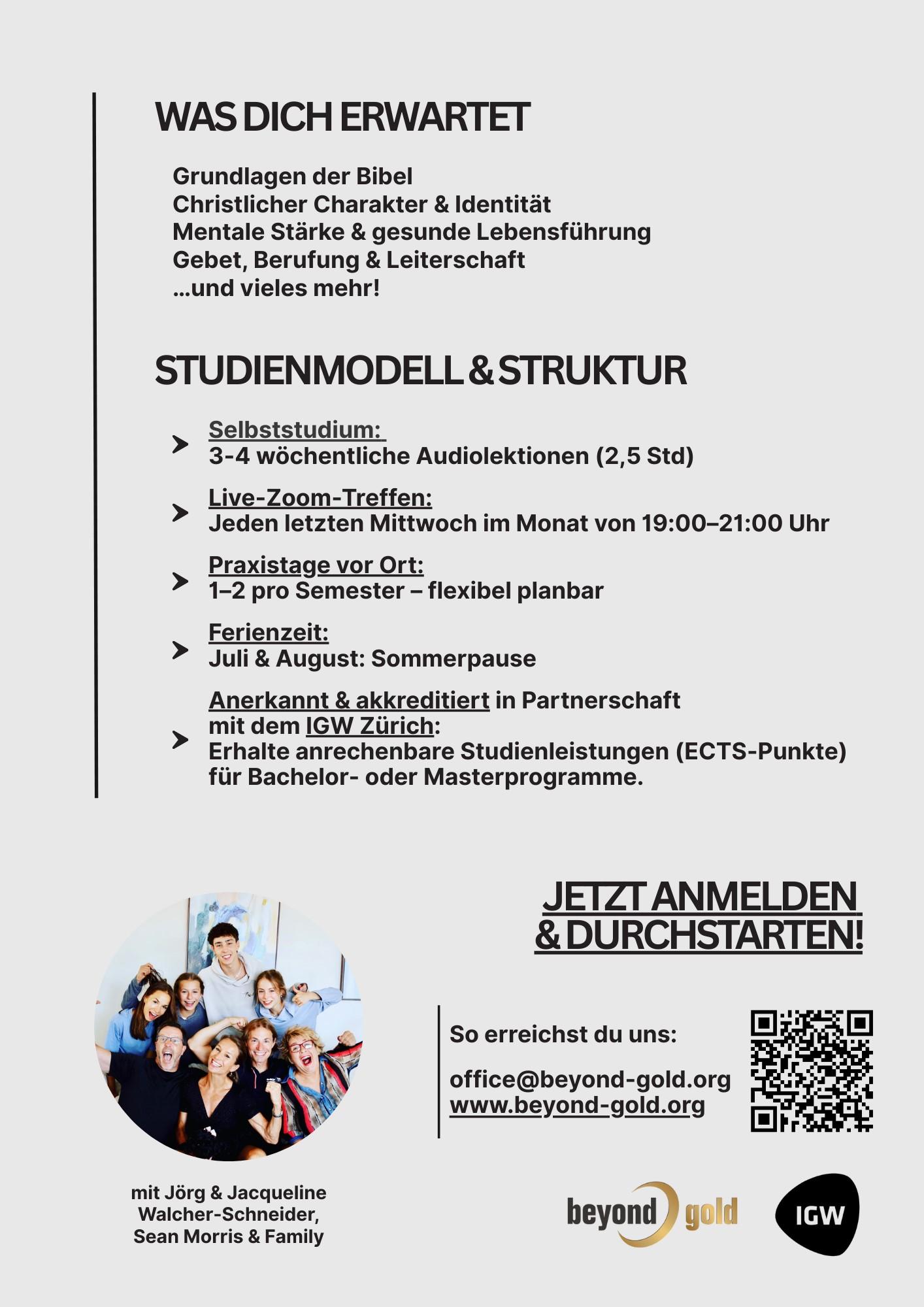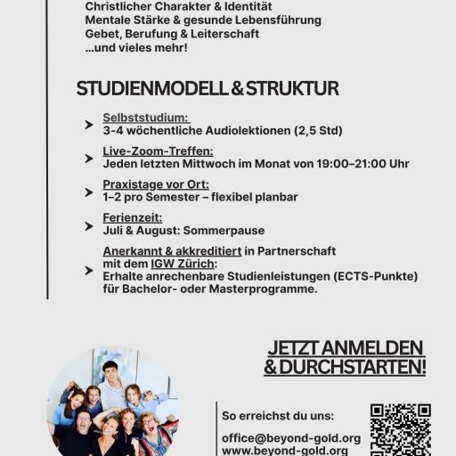 (Zwei Jahre Online-Bibelschule in Partnerschaft mit der Theologischen Fachhochschule IGW Zürich.)