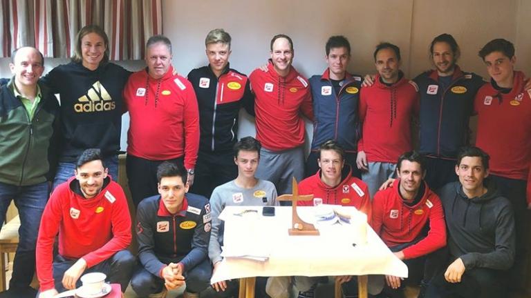 On the evening before the World Cup Race of the Nordic Combined Athletes (Ski Jumping & Cross-Country Skiing) in Ramsau am Dachstein, we were able to hold a Team Devotion with the Austrian and Italian Team. In addition to World Champion Berni Gruper and his experienced team colleagues, a lot of young athletes, coaches, physiotherapists and their team doctor attended this devotion.