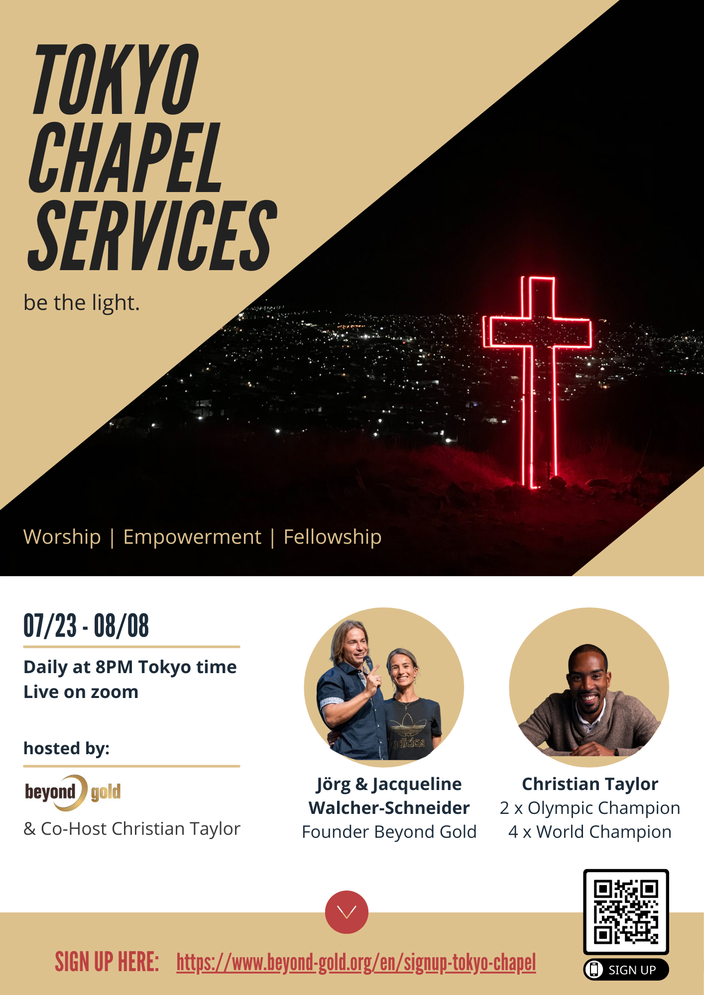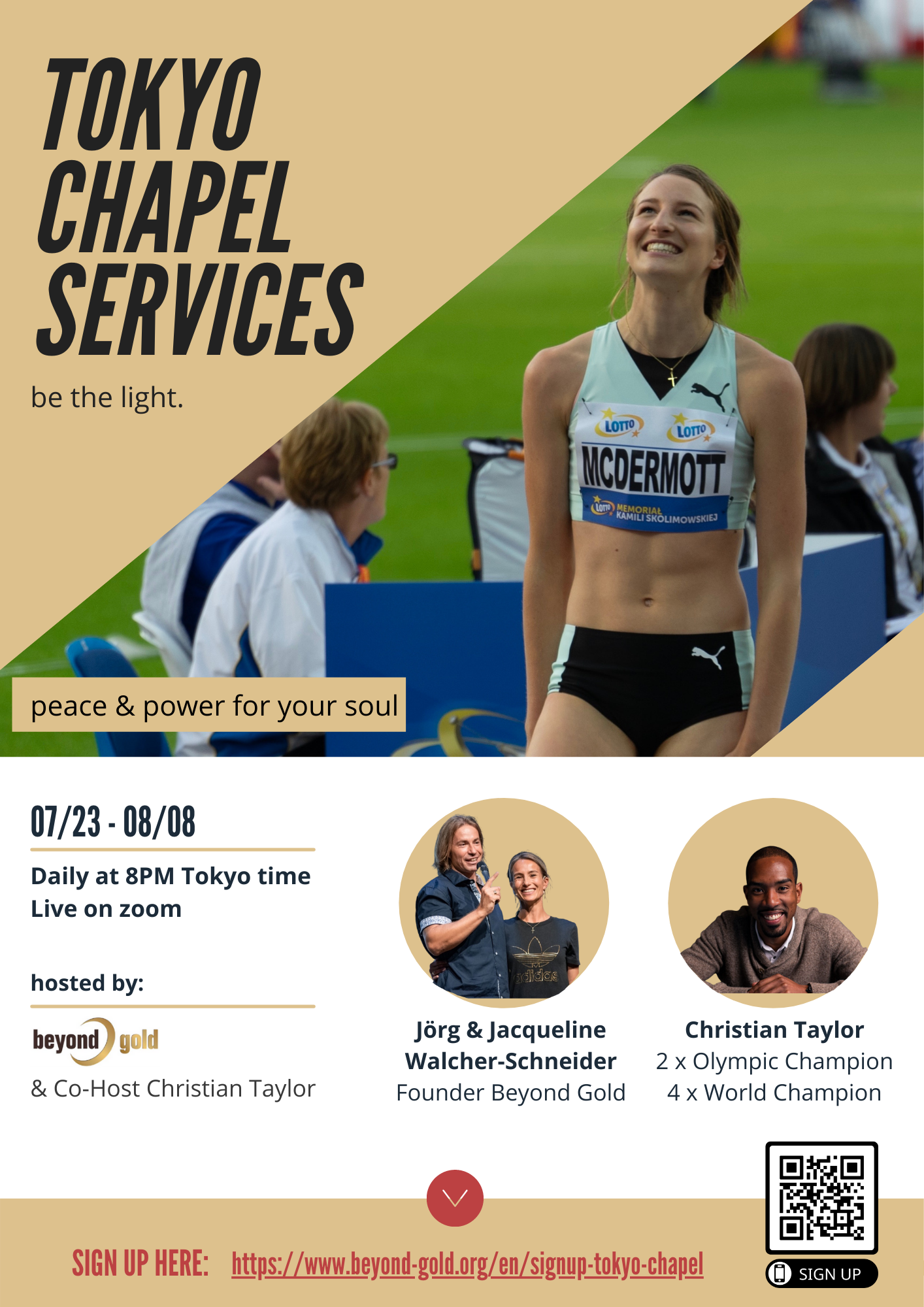 online services during the Olympic Games Während der Olympischen Spiele in Tokyo werden wir täglich live online-Andachten für die Olympioniken und Trainer veranstalten. Hier findet ihr noch weitere online Andachten für Olympioniken und Sportler. Andachten